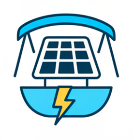 Instalamos paneles monocristalinos de alta eficiencia en estructuras como el bimini, optimizando el espacio disponible y minimizando las sombras para una captación máxima de energía durante las horas de sol.