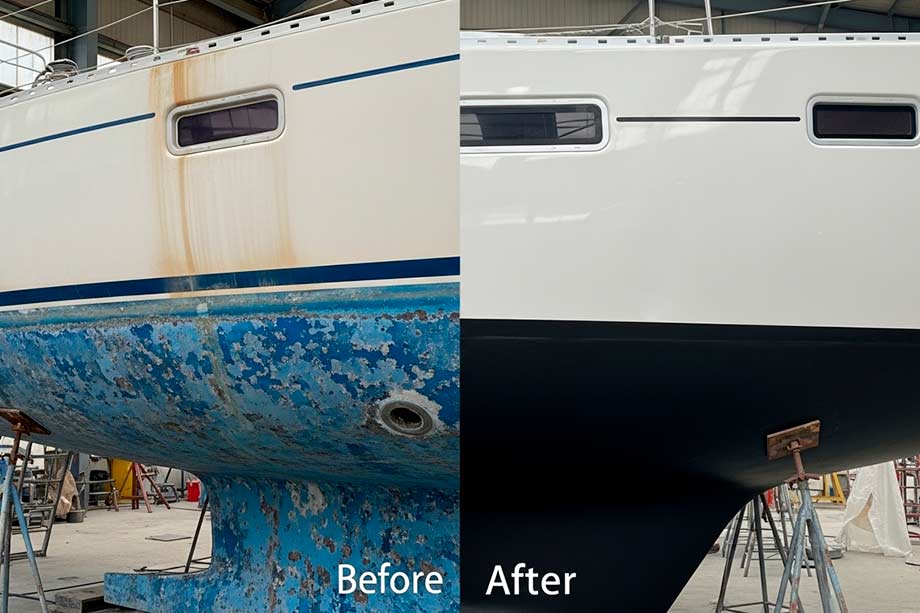 Un tratamiento impecable de la obra viva es crítico para el rendimiento de cualquier embarcación. Nuestro proceso comienza con un decapado profesional que elimina por completo cualquier rastro de incrustaciones y recubrimientos antiguos, preparando el casco para recibir el tratamiento óptimo. La aplicación técnica de antifouling de última generación no es solo una barrera; es una intervención directa sobre la hidrodinámica del casco.